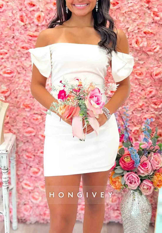 Trendy Sheath Off the Shoulder White Short Homecoming Dress with Bowknot