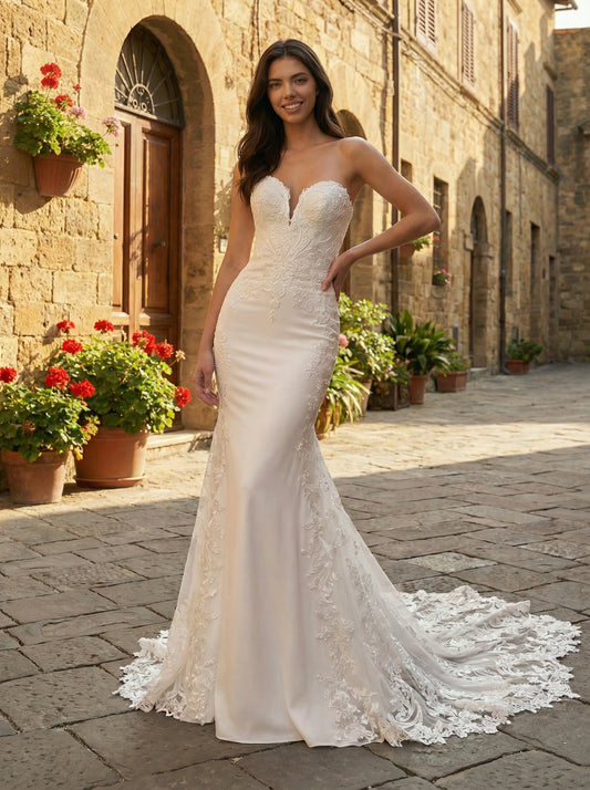 Sexy Applique Trumpet Wedding Dress with Train New 2025 HONGIVEY