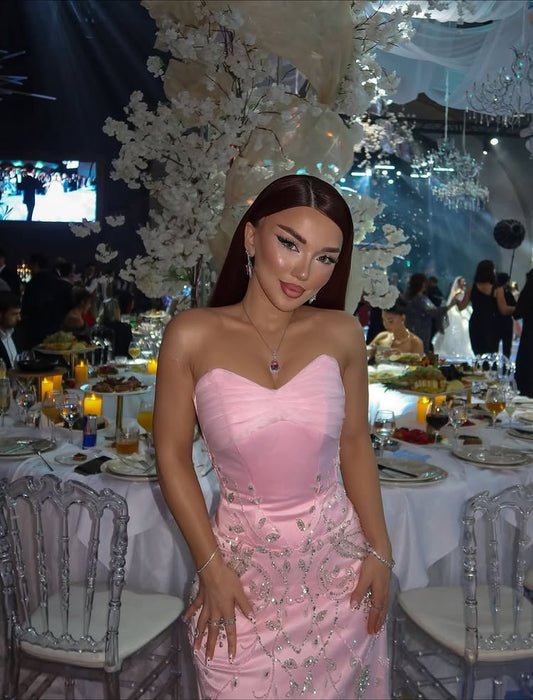 Pink Sweetheart Sleeveless Mermaid Beaded Sparkle Applique Prom Dress