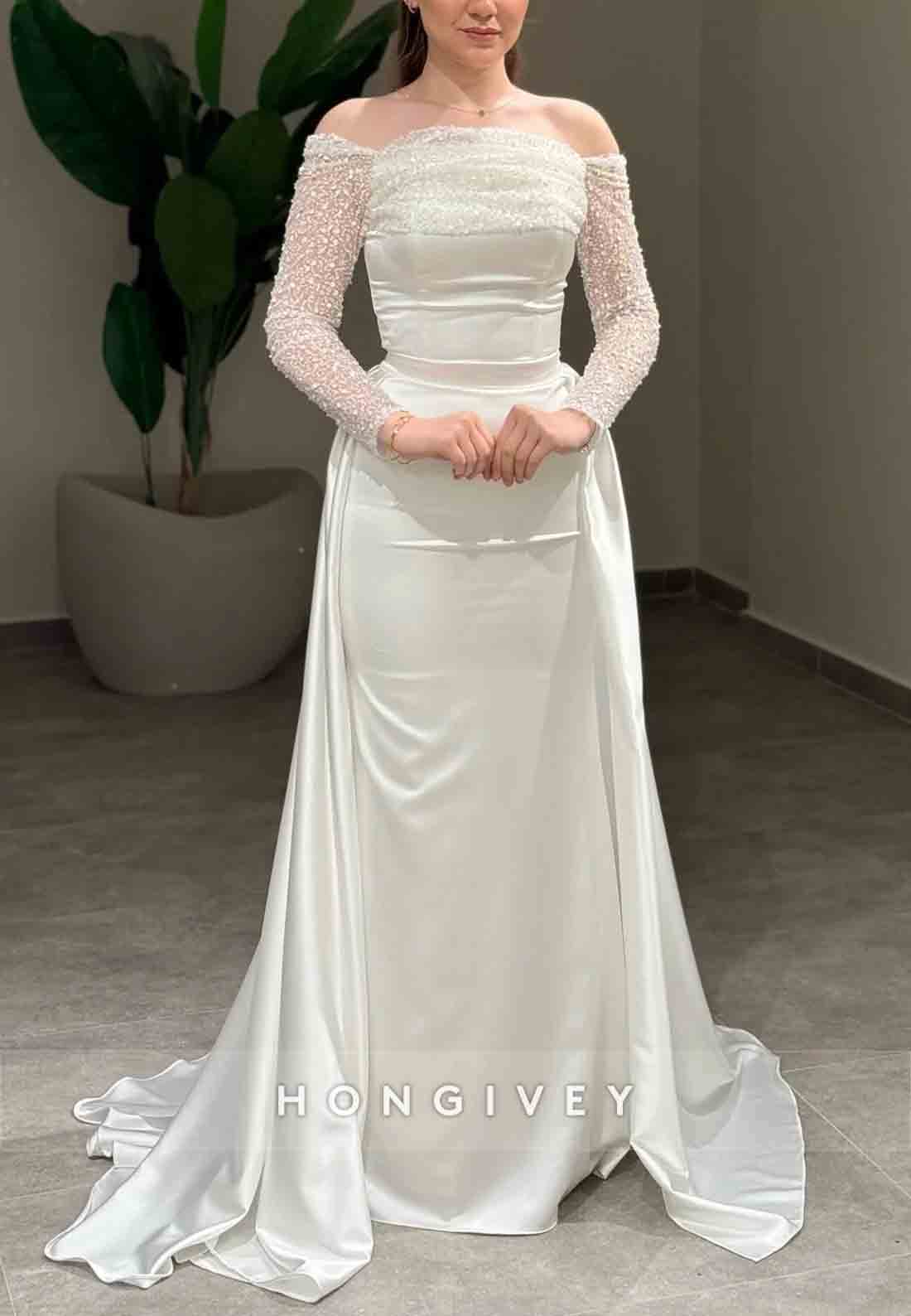 Off the Shoulder Long Sleeves Detachable Sequined Trumpet Evening Gowns