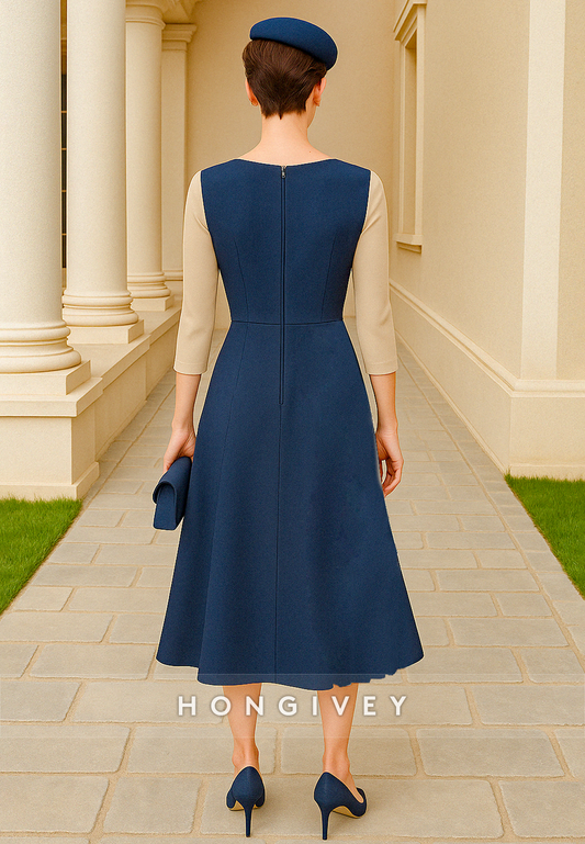 A-Line 3/4 Sleeve Tea-Length Mother of the Bride Dress with Side Slit