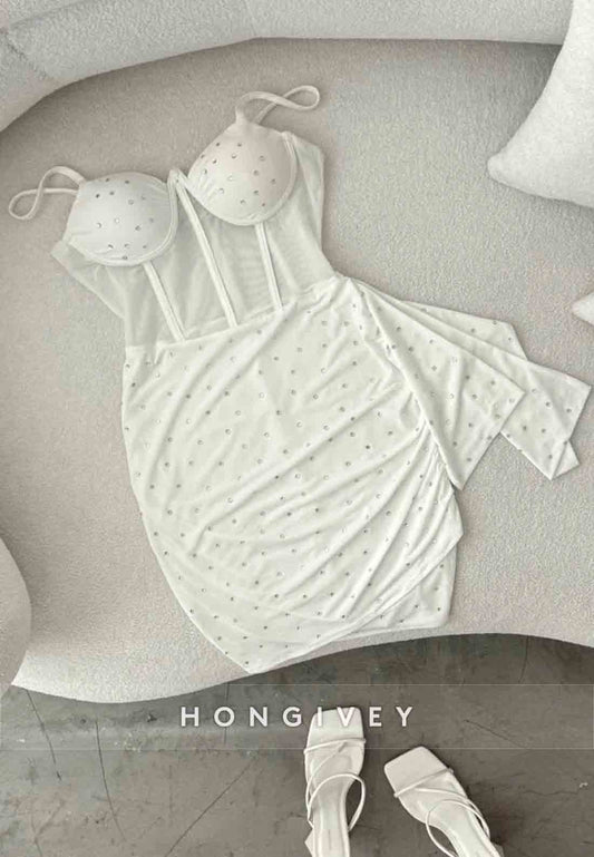 Spaghetti Straps Tie Back Dripping in Sparkle Sequin Beaded Mini Homecoming Dress