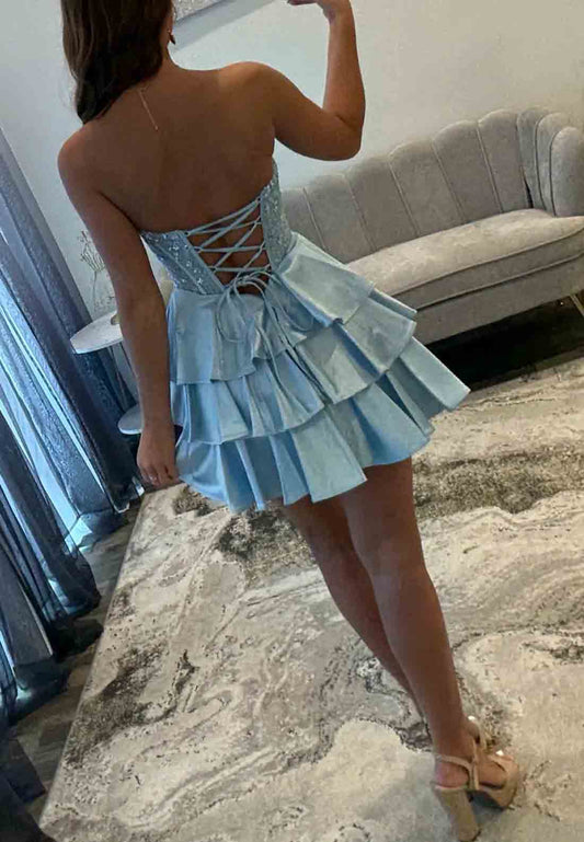 Strapless A-Line Tie Back Sweetheart Short Homecoming Dress with Corset