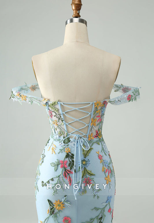 Sheath Tie Back Shoulder Flower Short Homecoming Dress with Embroidery Flowers
