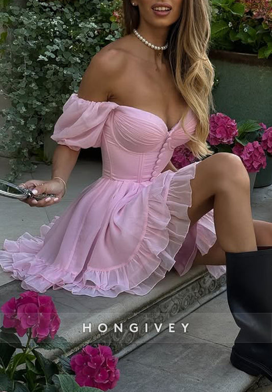 Pink Off the Shoulder Ruched A-Line Sweetheart Short Homecoming Dress