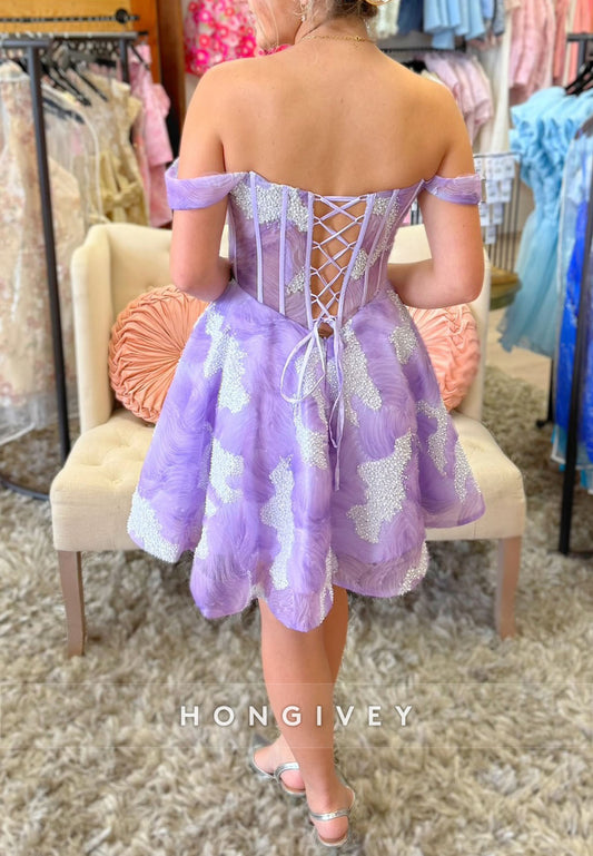 Off the Shoulder Sweetheart Crisscross Back A-Line Short Homecoming Dress