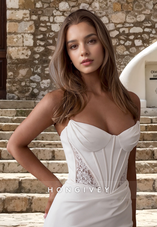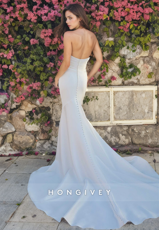HONGIVEY Mermaid Wedding Dress with Train Sweetheart Strapless Sleeveless Bride Gown
