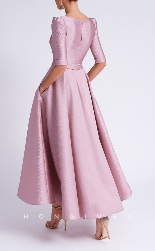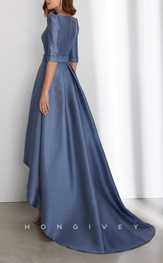 HM153 - Sexy Satin A-Line Asymmetrical Empire 3/4 Sleeves Bowknot With Pockets Mother of the Bride Dress