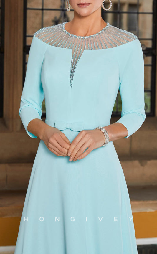 HM150 - Sexy Satin A-Line Round Empire 3/4 Sleeves Bowknot Beaded Mother of the Bride Dress