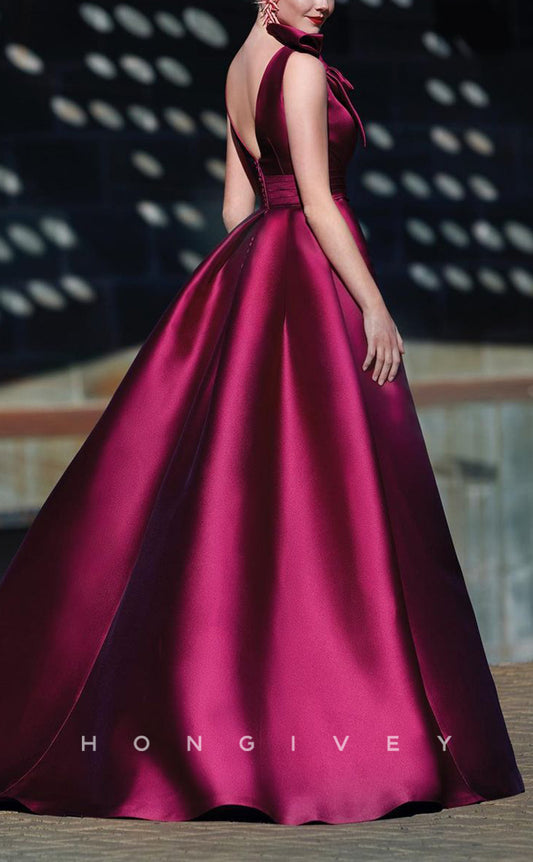 Column One Shoulder Satin Floor-Length Evening Gowns with Bowknot