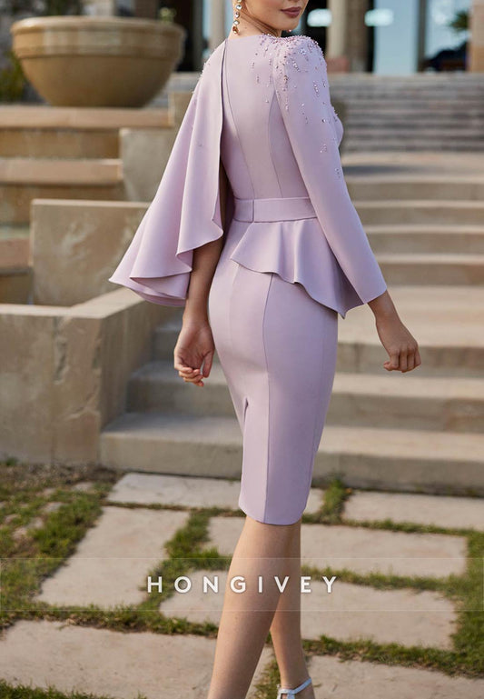 Sheath Knee-Length Peplum Cocktail Dresses V Neck Mother of the Bride One Shoulder Cape Pleated
