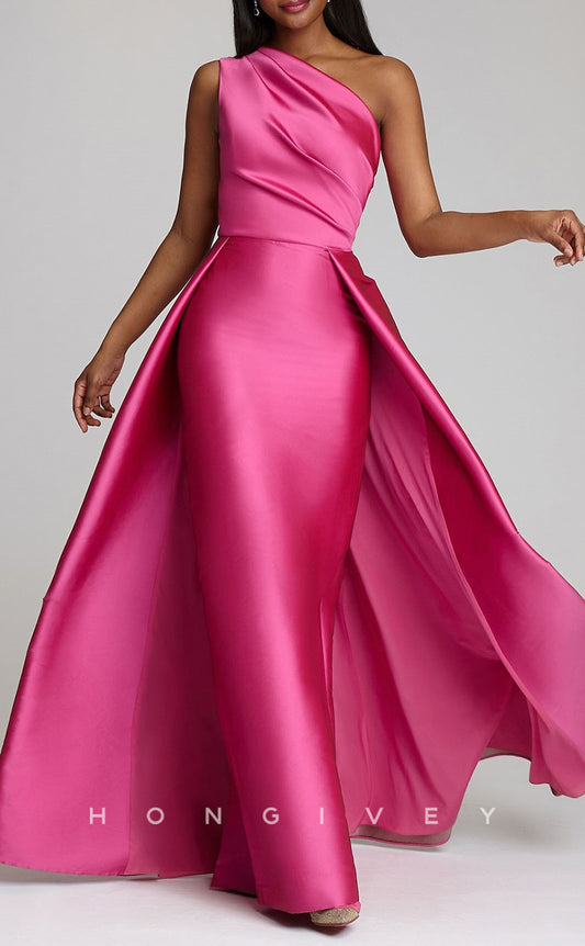 One Shoulder Fuchsia Satin Detachable Evening Gowns with Side Slit