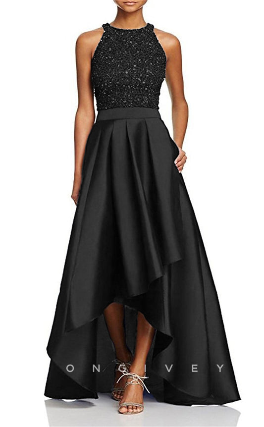 HM204 - A-Line Round Sleeveless Beaded Mother of the Bride Dress