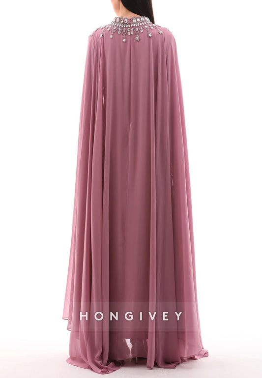 Elegant Long Sleeves High Neck Floor-Length Evening Gowns with Cape
