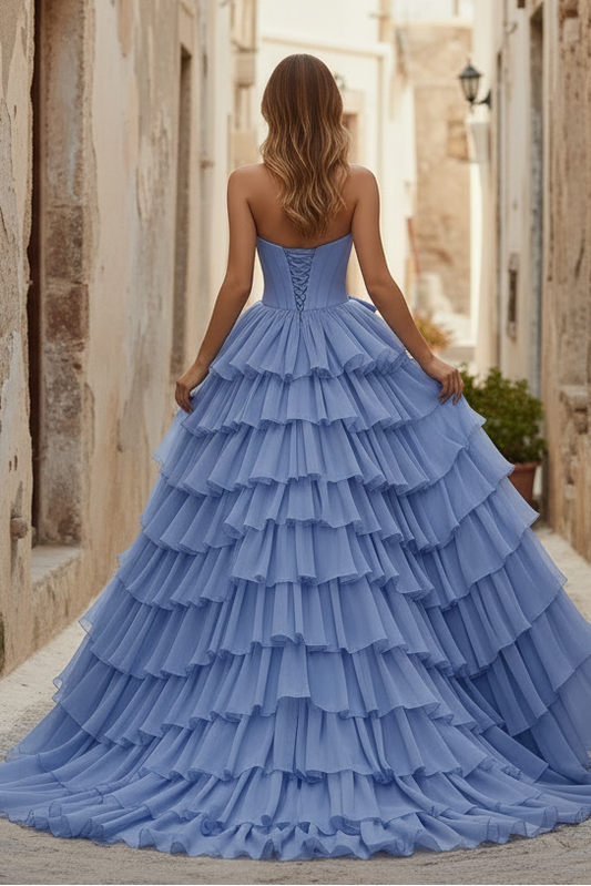 Strapless Tiered Side Slit Ballgown Long Prom Dress