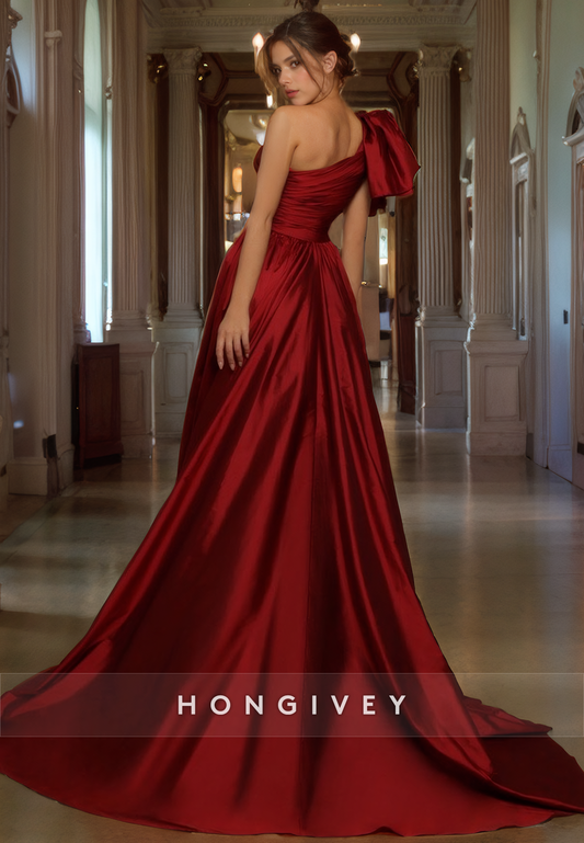 Red One Shoulder A-Line High Slit Prom Dress Ball Gown 2025 HONGIVEY