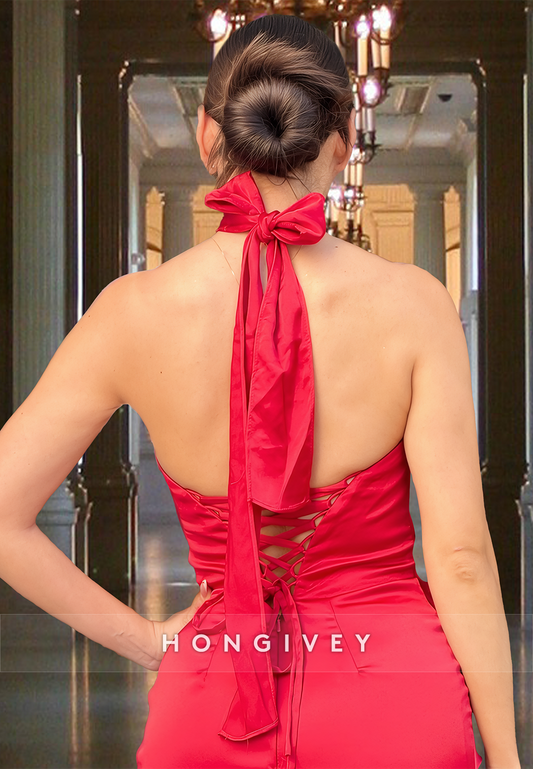 Sexy Red V-Neck High Slit Backless Evening Dress Formal Party Gown HONGIVEY