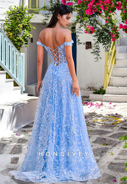 Floral Off-Shoulder Blue Long Prom Dress 2025 New Ball Gown HONGIVEY