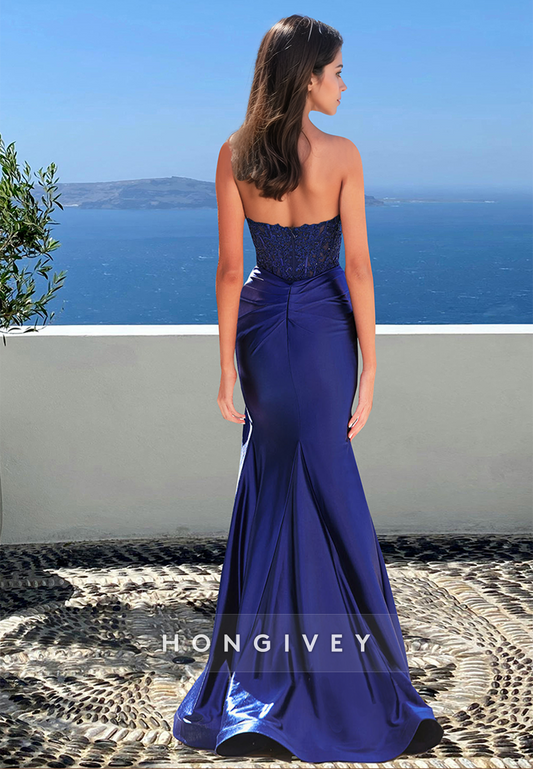 Sexy Sweetheart Strapless with Slit Blue Trumpet Formal Evening Dress