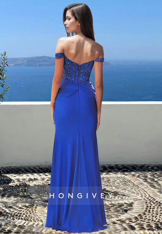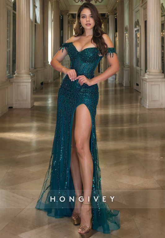 Stunning Off-Shoulder Sheath with Slit Formal Evening Dress 2025 HONGIVEY