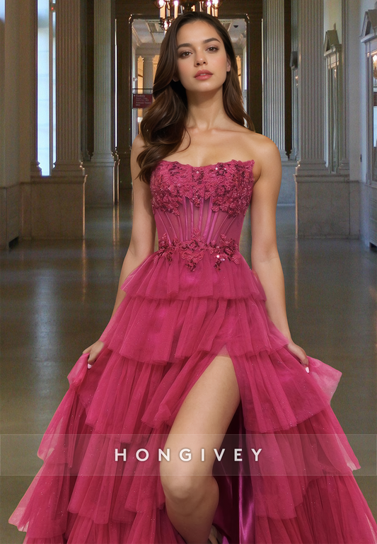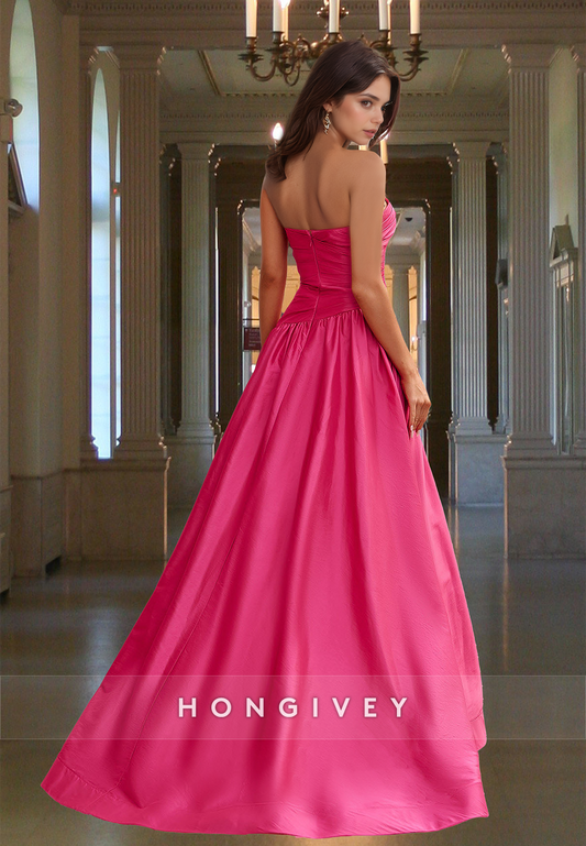 Chic Strapless A-Line with Slit Long Prom Dress Ball Gown HONGIVEY