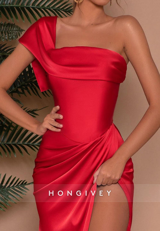 Sheath Sweetheart Satin Ruched Side Slit Long Prom Formal Dress