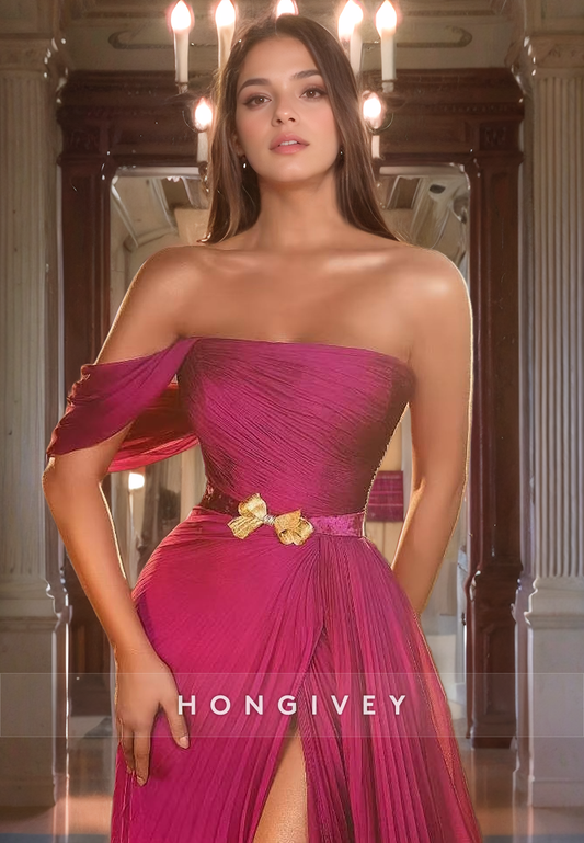 Chic One Shoulder A-Line Prom Dress Elegant with Bow Belt Ball Gown HONGIVEY