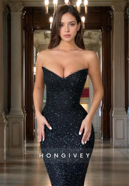 Sparkle Sequined sexy Red Sweetheart Sheath Strapless Evening Dress