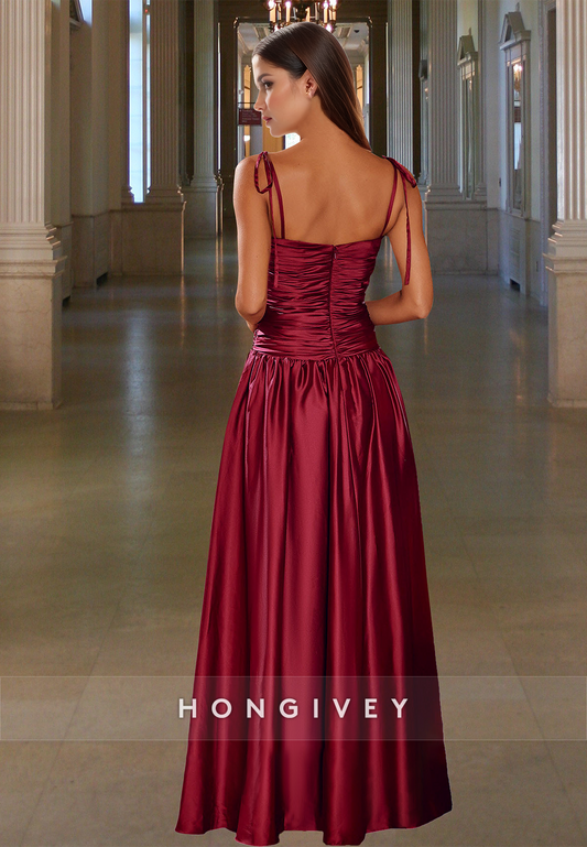 Square Spaghetti Straps Ruched Dark Red A-Line Simple Evening Prom Dress