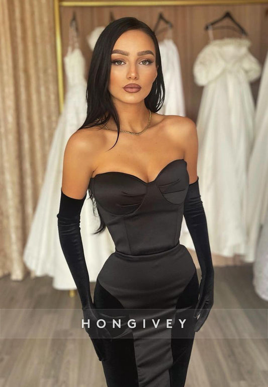 Couture High Slit Sweetheart Wedding Guest Dresses with Lace Gloves