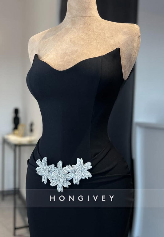 Sweetheart Rhinestone Floral Embellished Mermaid Long Prom Dresses with Train