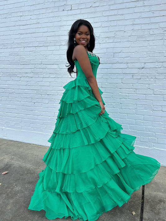 Sweethear Beaded Green Sleeveless A-Line Tassel Floor-Length Prom Dress