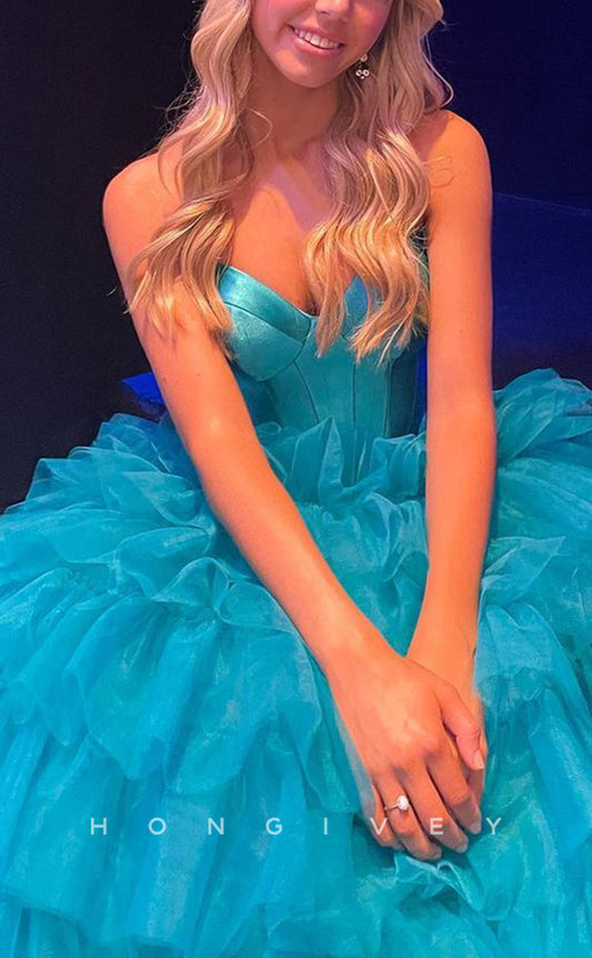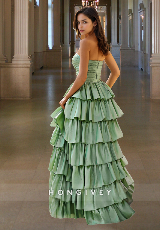 Green Solid Strapless Tiered A-Line Quinceanera Evening Party Prom Dress