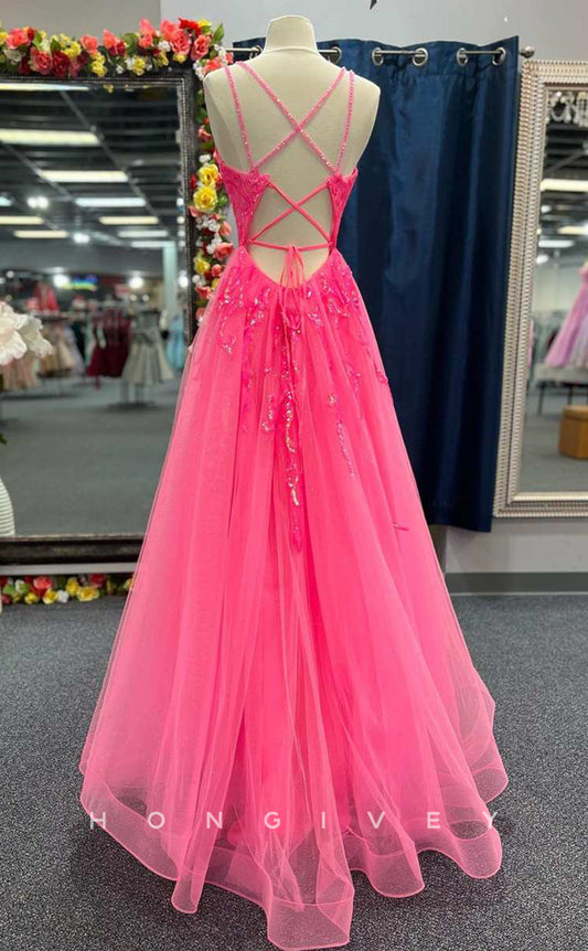L2492 - Sexy Tulle A-Line Bateau Spaghetti Straps Empire Appliques Beaded Party Prom Evening Dress