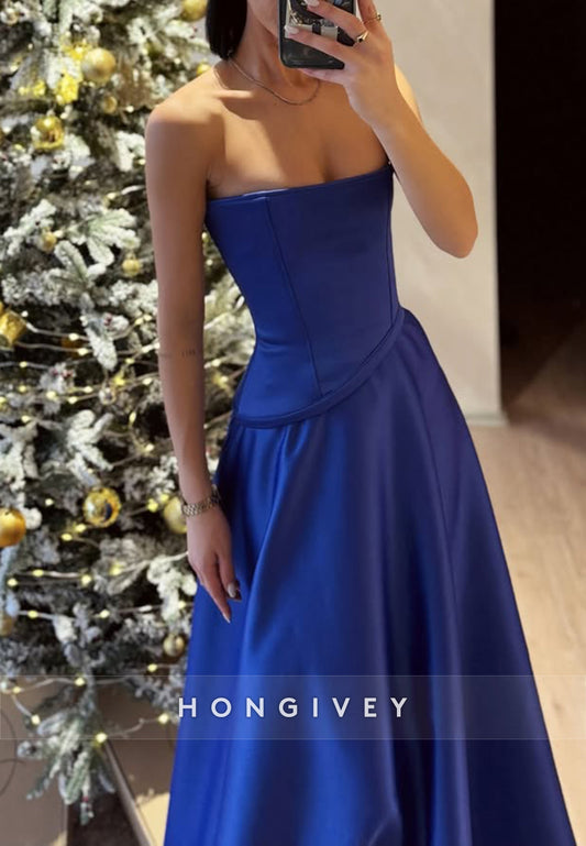 HONGIVEY Special Blue Prom Dress Strapless A-Line 2025 New Floor-Length Evening Dress