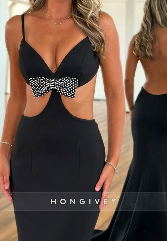 Open-Back V-Neck Bowknot Mermaid Prom Dresses with Train