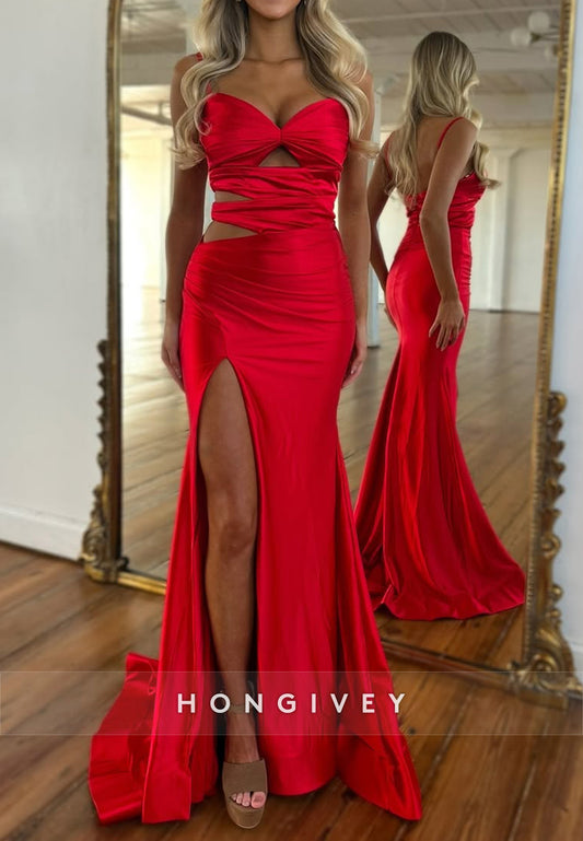 Spaghetti Straps Sweetheart Pleats Split Prom Dresses