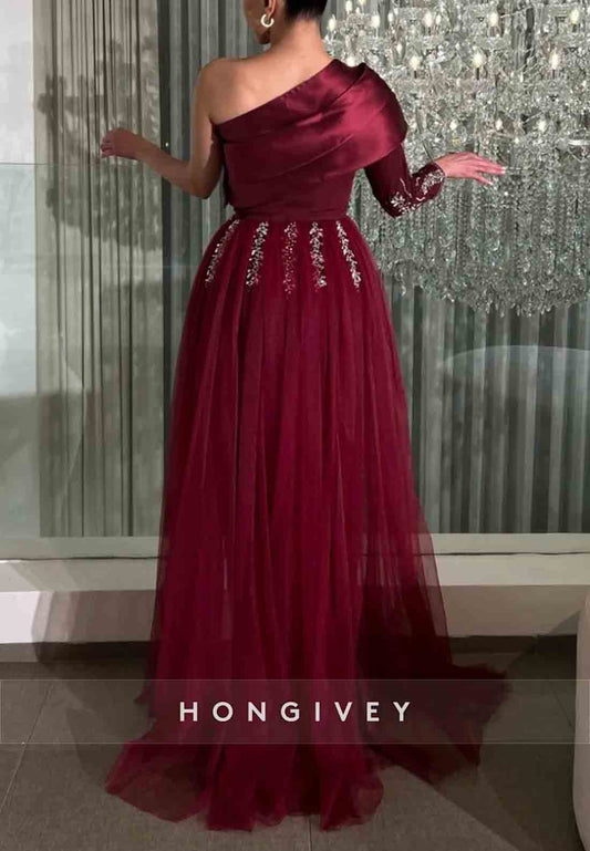 One shoulder Appliqued Formal Gowns Side Draping Asymmetrical Evening Gown