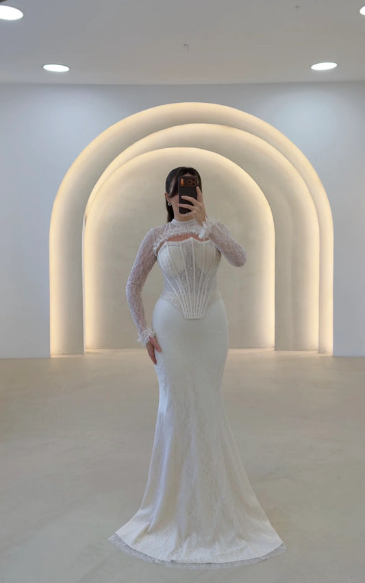 Lace Long Sleeve Mermaid Backless Floor-Length Evening Dress