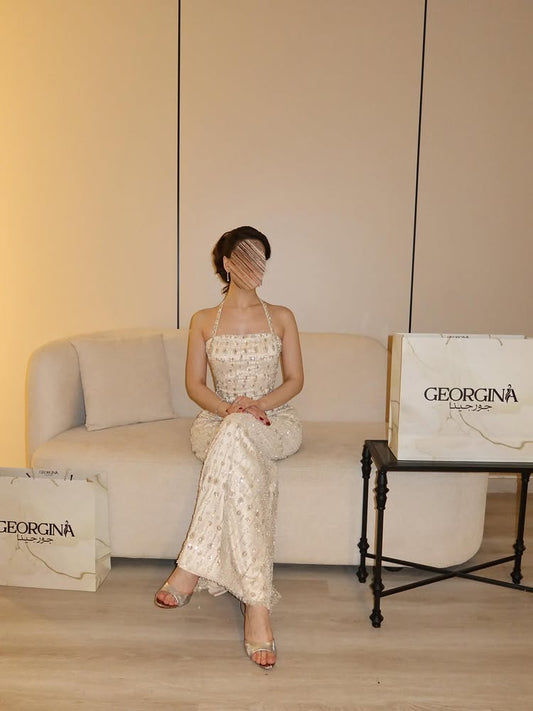 Halter Sleeveless Beaded Backless Mermaid Evening Dress Floor-Length