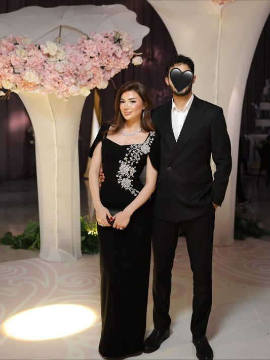 Black Flowers Cut Outs Long Sleeve Mermaid Beaded Evening Women