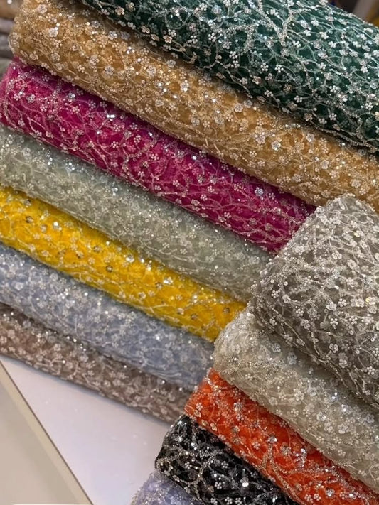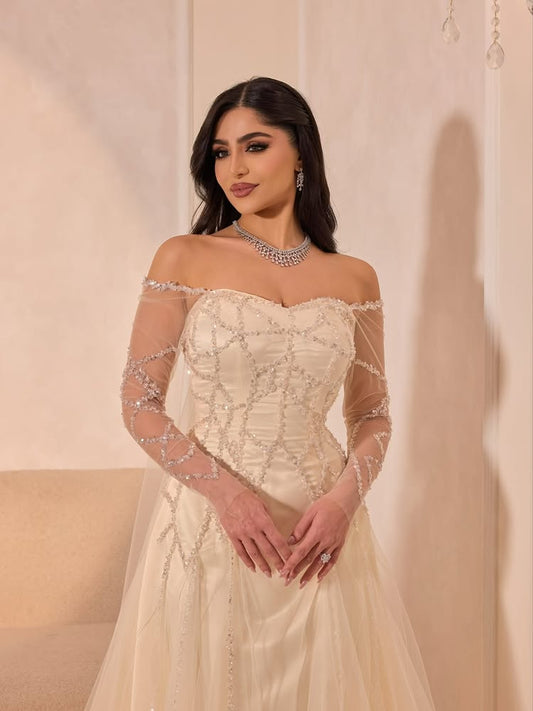 Sequins Sparkle Applique Off the Shoulder Long Sleeve Tulle A-Line Evening Dress