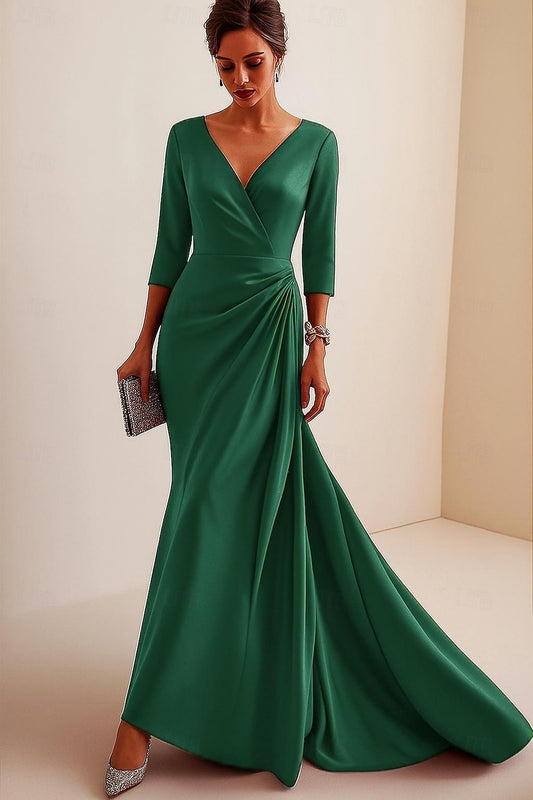 V-Neck 3/4 Sleeve Mermaid Floor-Length Women Evening Dress