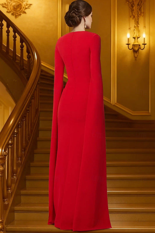 V-Neck A-Line Long Sleeve Ankle-Length Evening Dress
