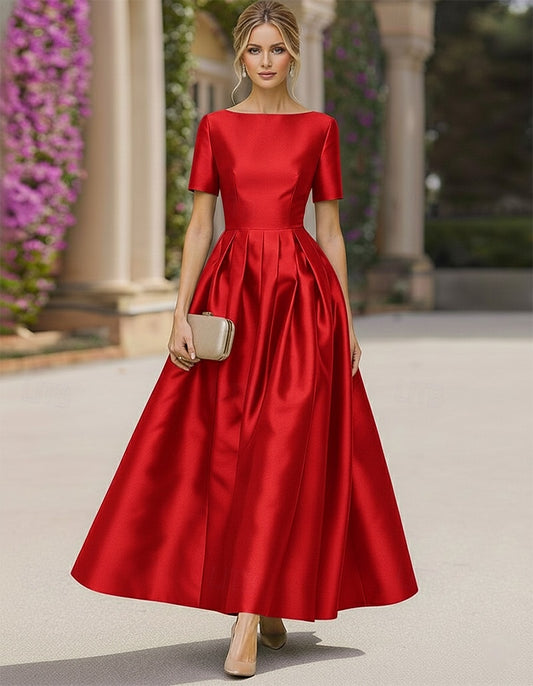 Half Sleeve A-Line Ankle-Length Evening Dress