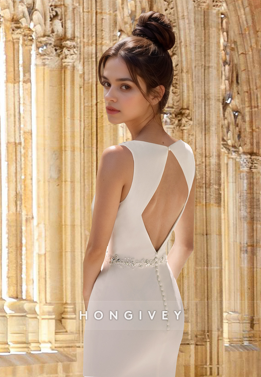 Sexy V-Neck Sheath Floor-Length Open Back Wedding Dress HONGIVEY