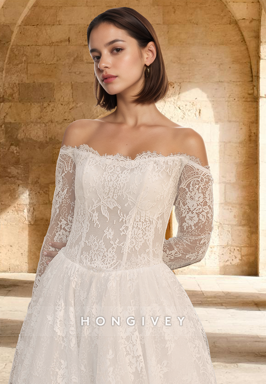 Sexy Off-Shoulder Applique A-Line with Train Wedding Dress 2025 New
