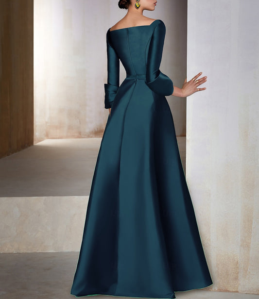 Elegant 3/4 Sleeve A-Line Women Floor-Length Evening Dress