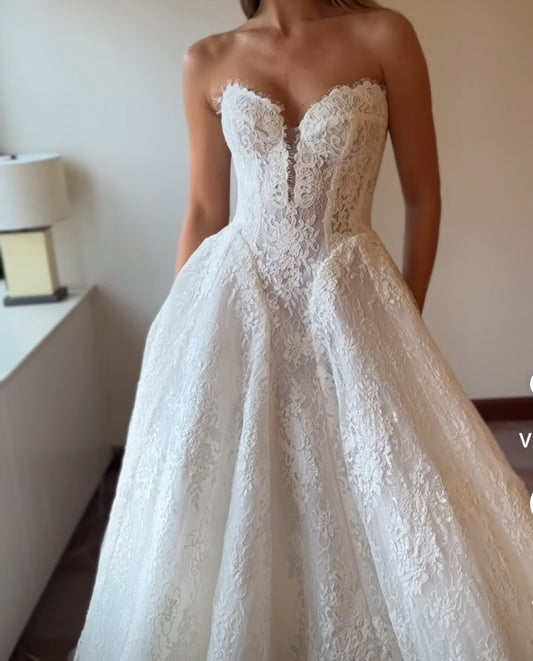 HONGIVEY Lace Applique Wedding Dress Sweetheart Floor-Length A-Line Bride Gown Custom