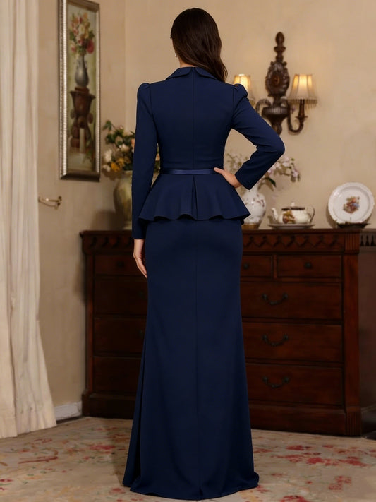 Evening Dresses Floor Length Long Sleeves Silk Like Satin Mother Of The Bride Dress Christmas Party Dress